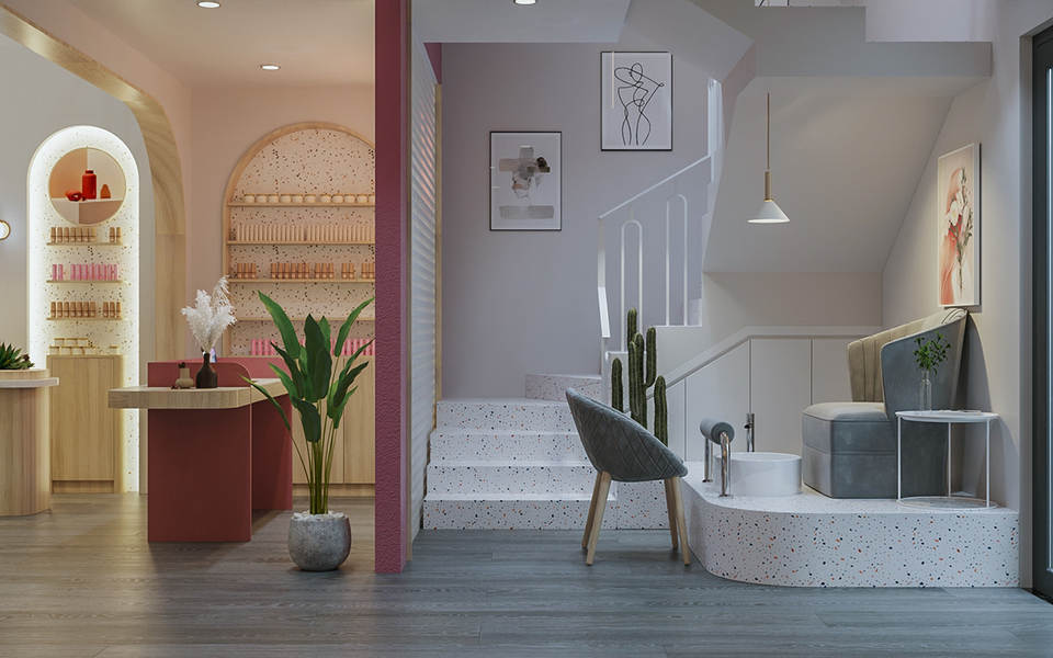 Modern Simple Custom Jewelry Showcase Display Rack Eco-Friendly Heavy Duty LED Customized Salon Interior Decoration Design