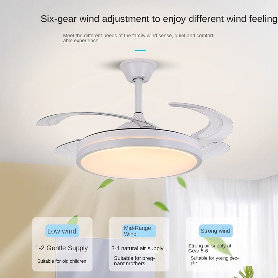 Modern Simple Fan Lamp LED Light for Living Room Bedroom Retractable Ceiling Light 5-Year Warranty 3000-6500K Color Temperature