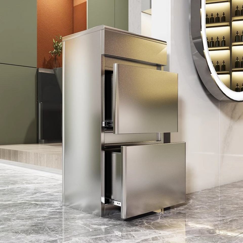 Modern Simple Gold Silver Black Two-Layer Stainless Steel Barber Shop Station Hair Salon Trolley Wall Cabinets