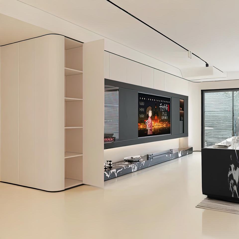 Modern Simple Style Wall Cabinet for TV Customizable Factory Living Room Furniture with Embedded LED Wooden Panel