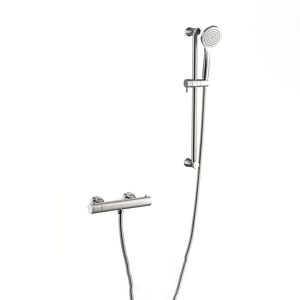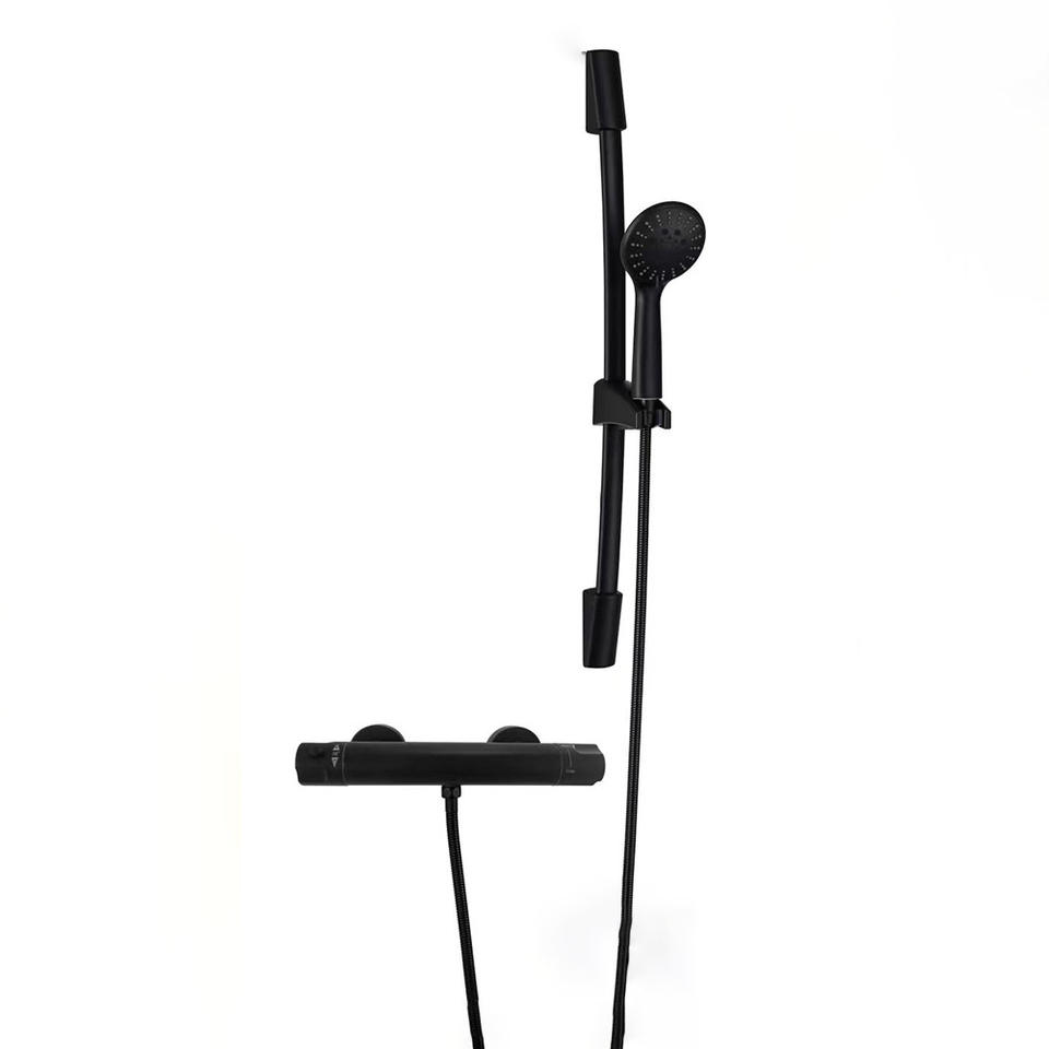 Vimijia Modern Single-Function All-Copper Thermostatic Faucet Set Black Wall-Mounted Portable for Home Bathroom Rain Soft Spray
