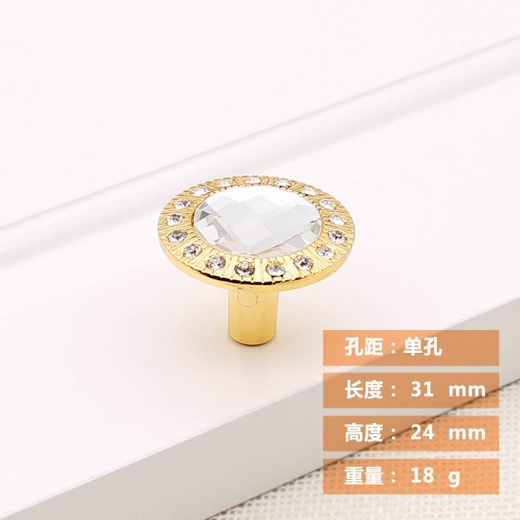 Modern Single-Hole Diamond Crystal Handle Zinc Alloy Drawer Pull Hardware for Bedroom Kitchen-Durable Easy Installation