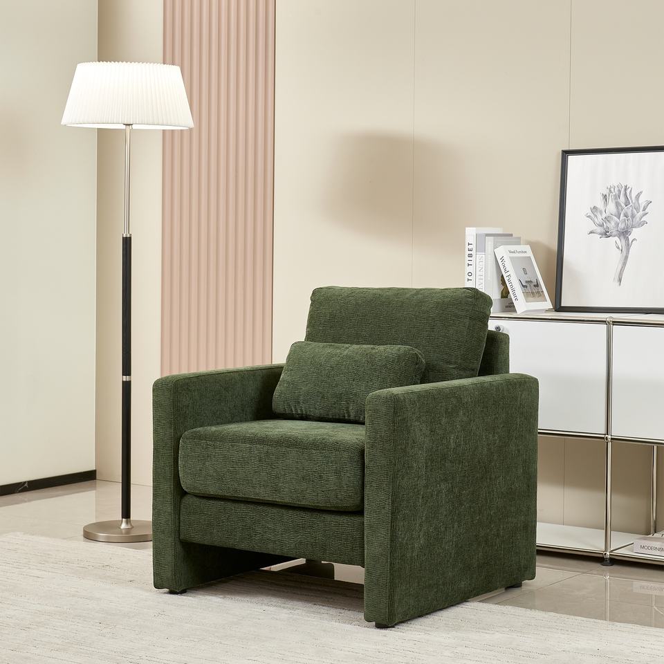 Modern Single Seat Corner Sofa with Curved Design Upholstered Wooden Frame Fabric Cover Green Color For Living Room, Hotel Lobby