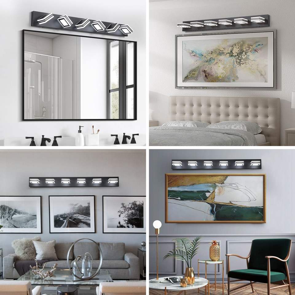 Modern Sleek 6-Light LED Vanity Light Energy-Efficient Iron Acrylic Bathroom Wall Fixture with Dimmable Mirror Lighting