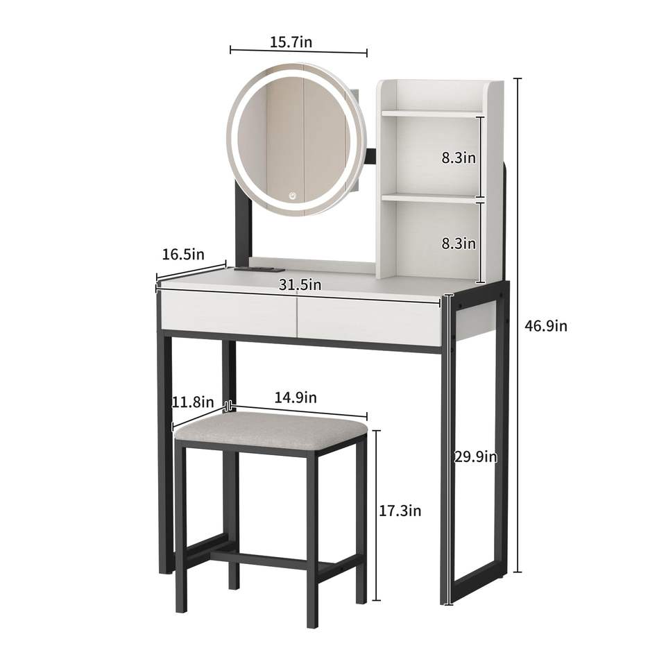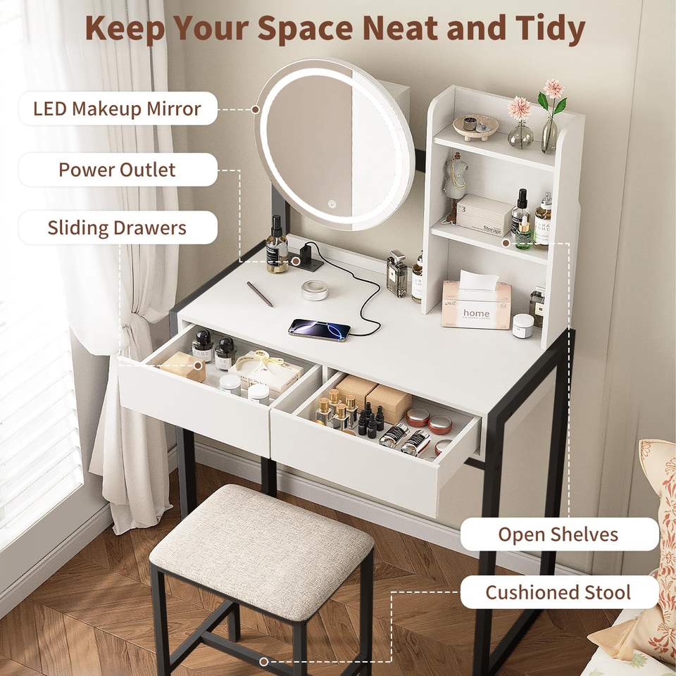 Modern Small Vanity Desk with LED Mirror and 3 Lighting Modes Makeup Table for Living Room & Hotel Use