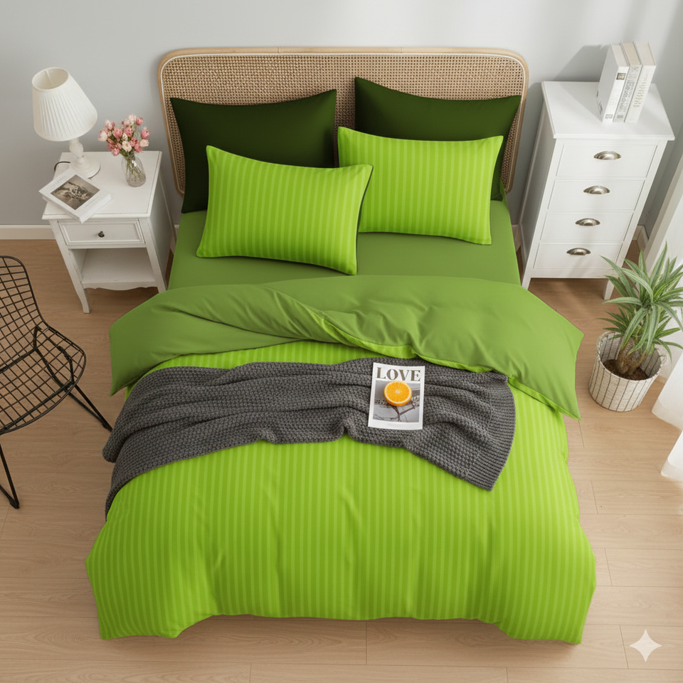 Modern Solid 100% Bamboo Woven Duvet Cover Set with Polyester Filling King Size Ultra Soft 140 GSM All-Season Green