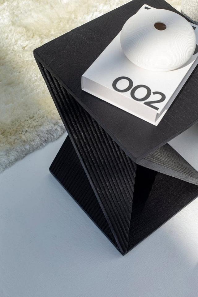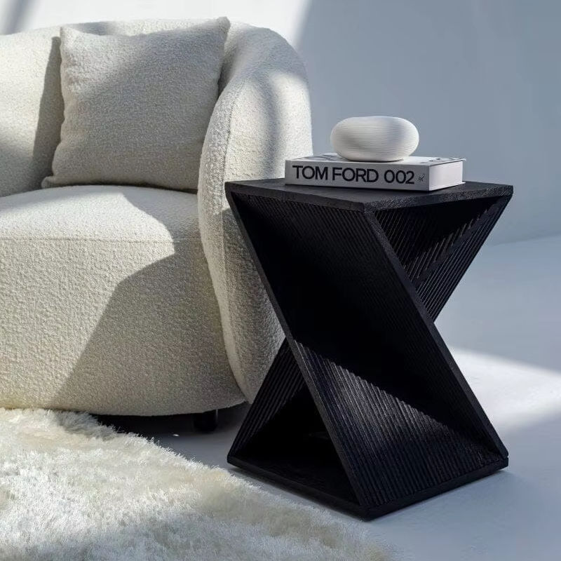Modern Solid Mango Wood Nightstand Black Rotated Side Table for Bedroom & Living Room Assembled Furniture for Dining Application