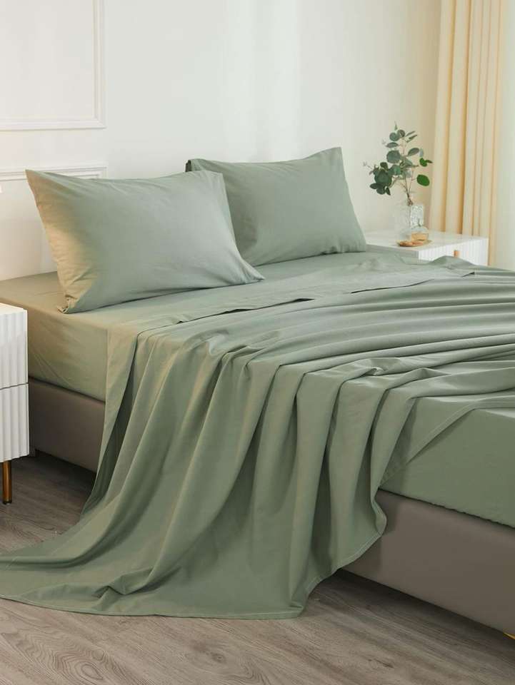 Modern Solid Polyester/Cotton Luxury 500TC Eco-Friendly Organic Water Resistant All-Season Wool 4-Piece Fitted Bed Sheet Queen