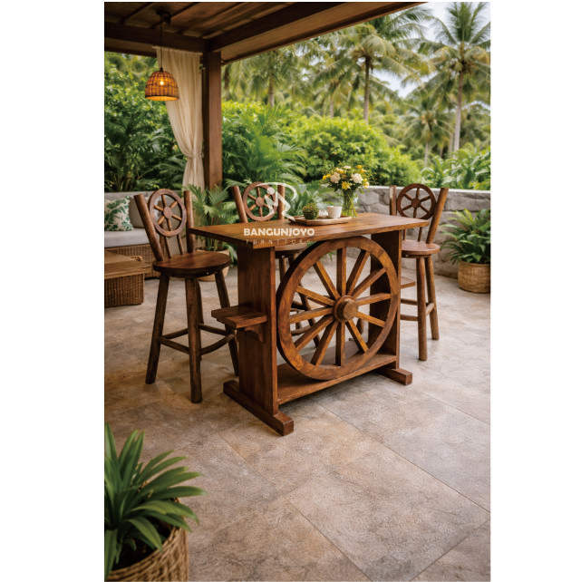 Modern Solid Teak Wood Square Bar Table and Chair Set Durable 4-Seater for Home Bar Hotel Outdoor/Indoor Use