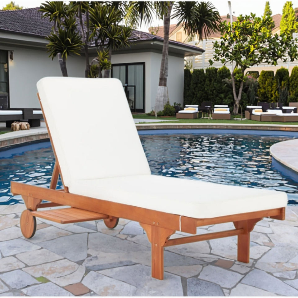 Modern Solid Teak Wooden Chaise Lounge Foam-Filled Cushion Easy Mobility Adjustable Support for Villa Outdoor Patio Garden Use
