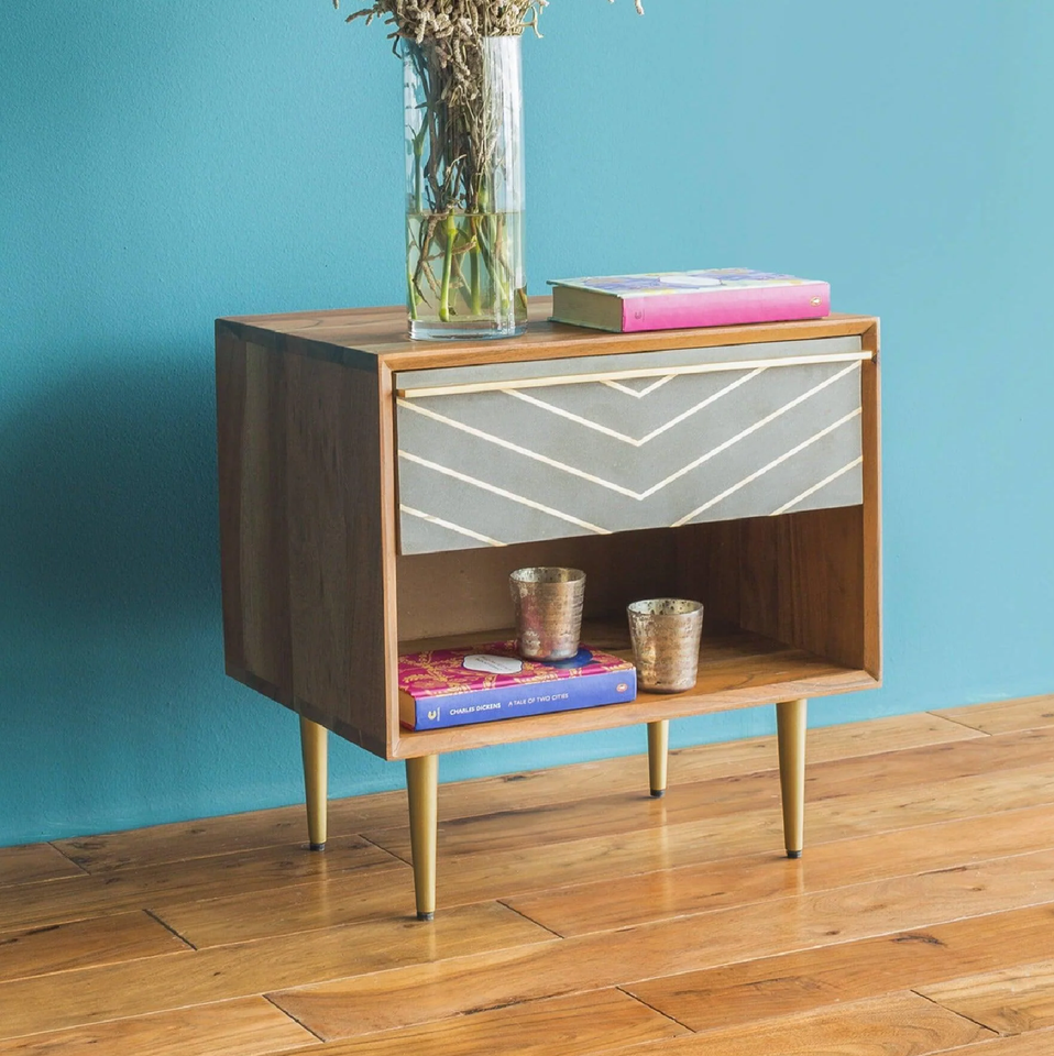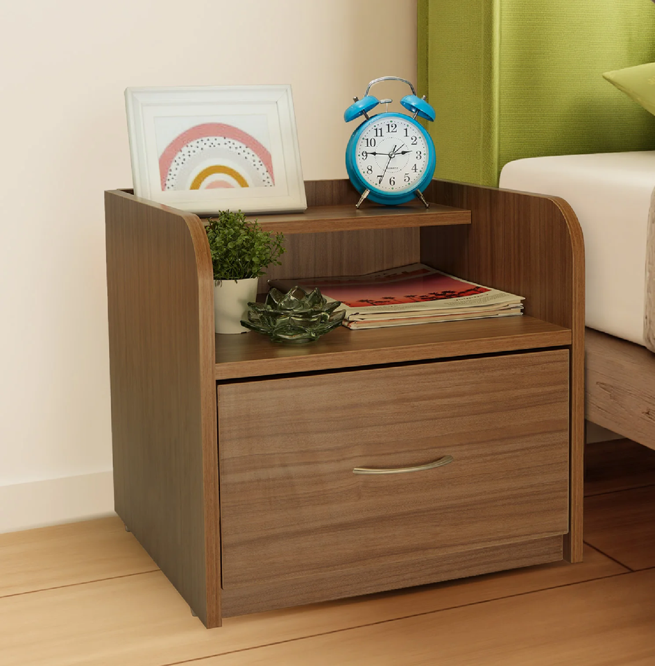 Modern Solid Wood Bedside Table, 2 Drawers, Open Shelf & Tapered Legs, Customizable Bedroom Furniture at wholesale prices.