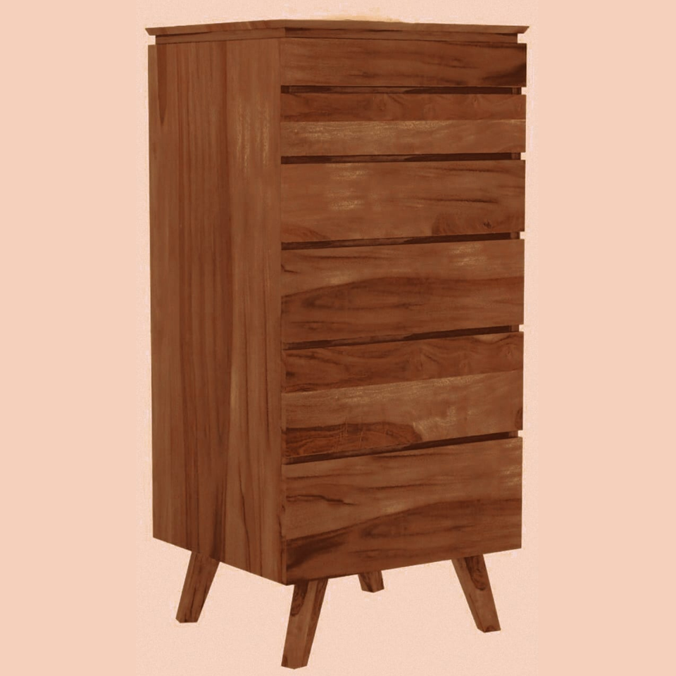 Modern Solid Wood Chest of 6 Drawers Teak Finish Tall Dresser Storage Cabinet with Tapered Legs