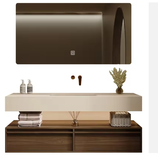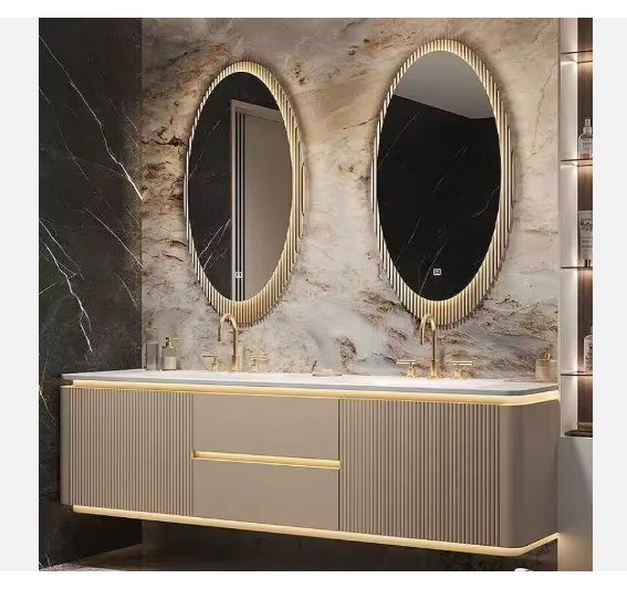 Modern Solid Wood Counter European Modern Luxury Bathroom Storage Marble Top Ceramic Basin Waterproof Design for Villa Washroom