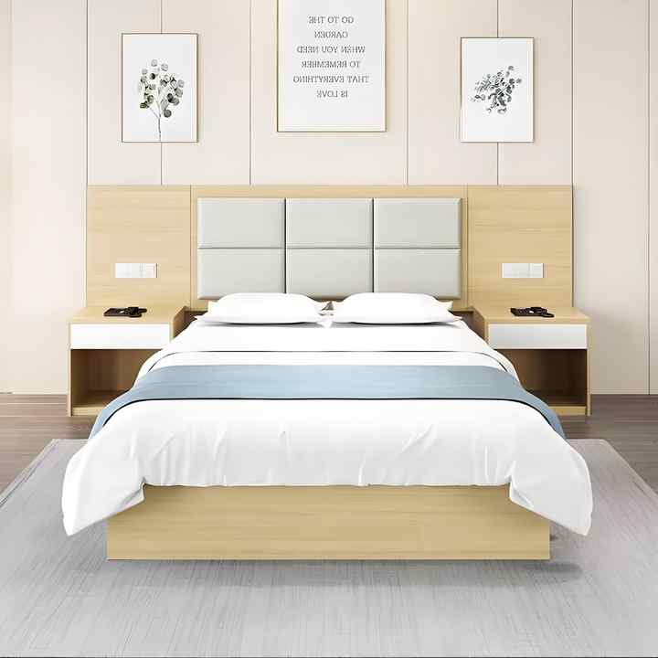 Modern Solid Wood Durable & Strong Bed Set with Headboards and Frames for Hotel Apartment Villa Bedrooms