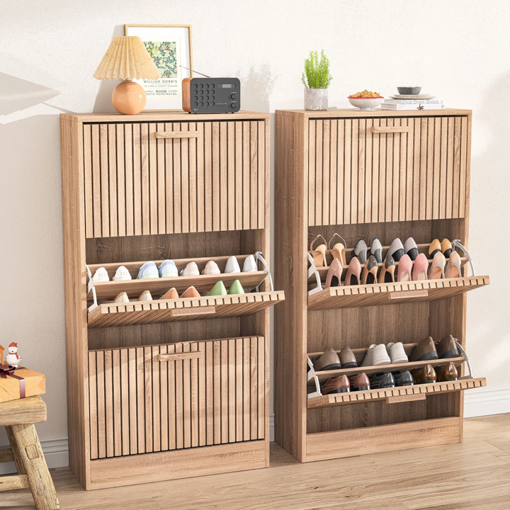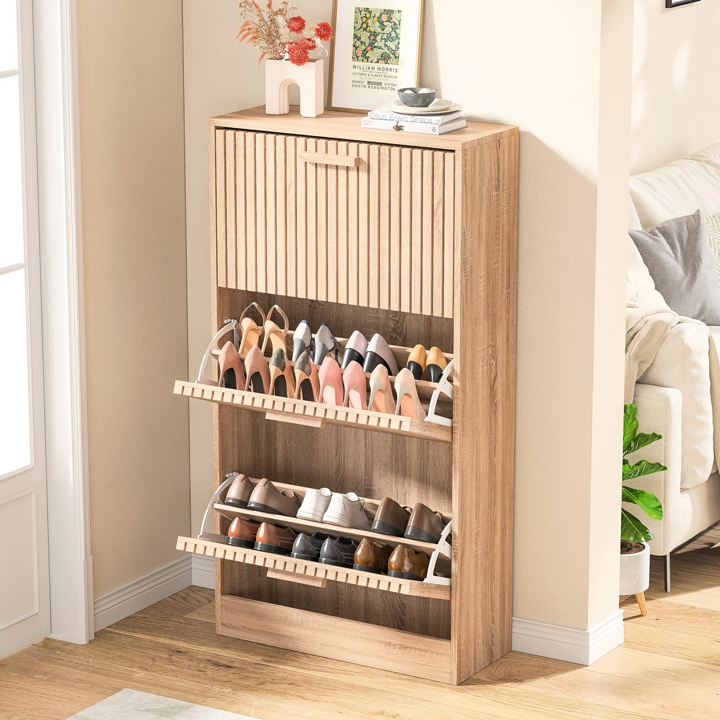 Modern Solid Wood Free Standing Shoe Storage Cabinet 3 Flip Drawers Extendable Entryway Bench for Home Furniture for Living Room