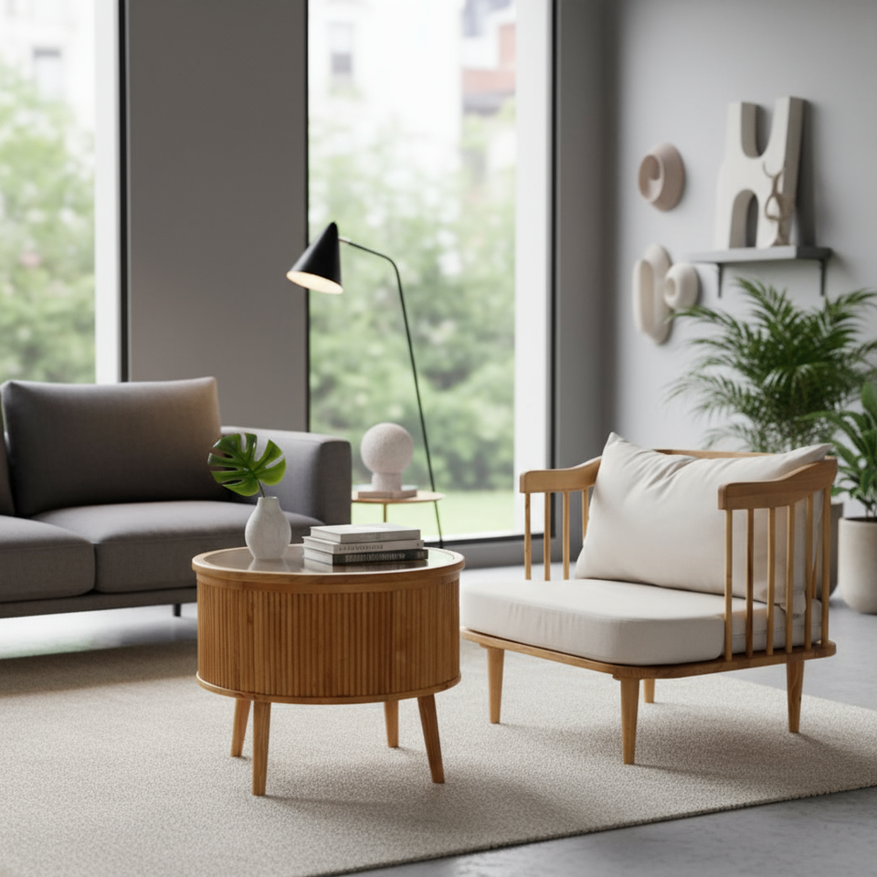 Modern Traditional Style Solid Wood Lounge Chair Coffee Table Set with Cushions for Outdoor Hotel Lobby Balcony Living Room Use