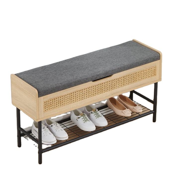 Modern Solid Wood Natural Rattan Shoe Storage Bench Rack Moisture-Proof Insect-Proof Home Furniture
