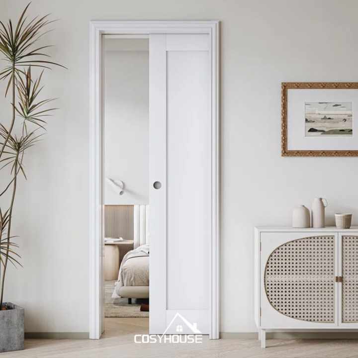 Modern Solid Wood Pocket Sliding Door Soundproof Fireproof Features Space-Saving Design for Bedroom Apartment Use Customizable