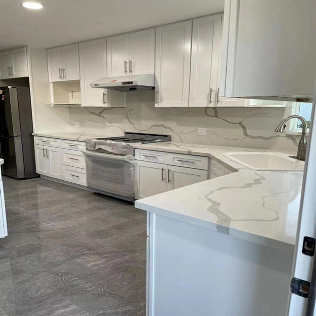 Modern Solid Wood RTA White Shaker Modular Kitchen Cabinet Sink Backsplash Plywood Construction Includes Faucet Apartment Dining