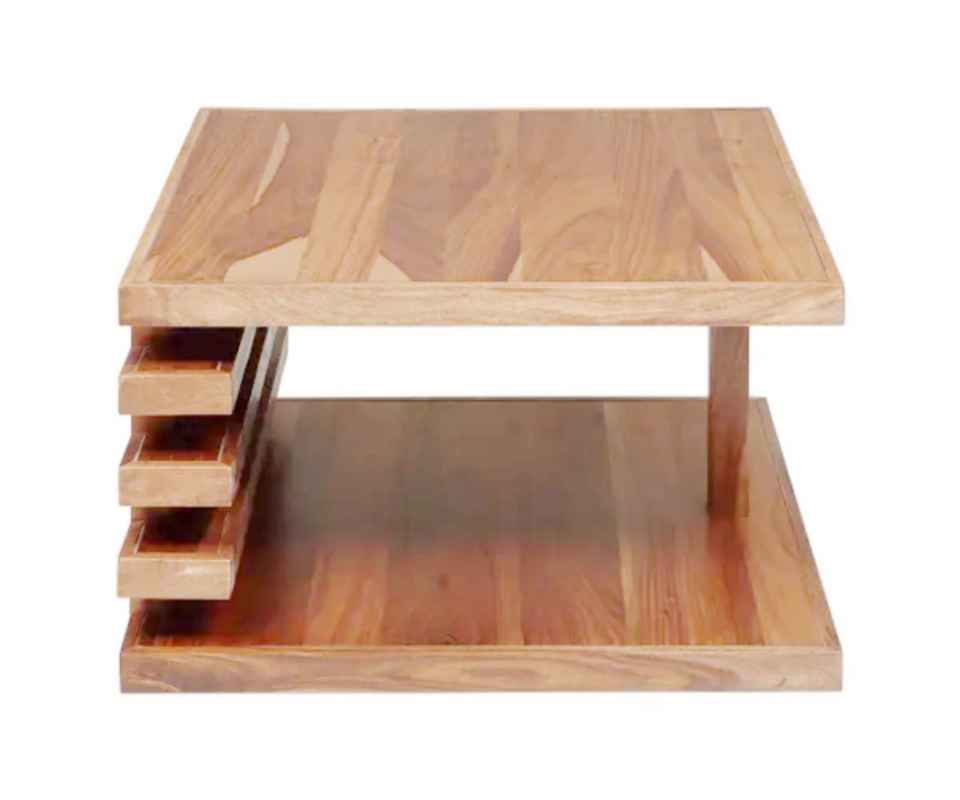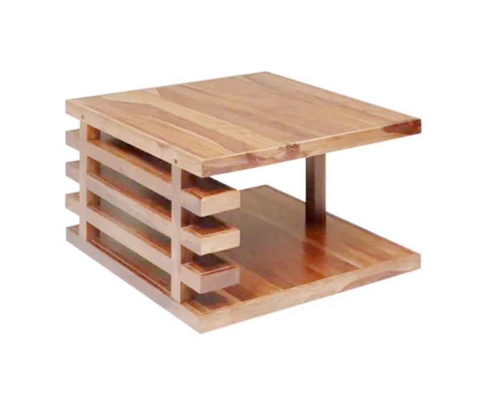 Modern Solid Wood Square Coffee Table with Open Shelf Storage Home Living Room Furniture Side Table