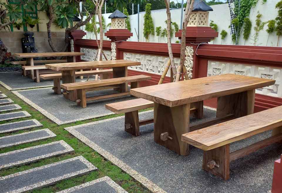 Modern Solid Wood Table and Bench Set Suar Wood Chair for Dining Restaurant Hotel or Villa Garden Use, Rustic Table
