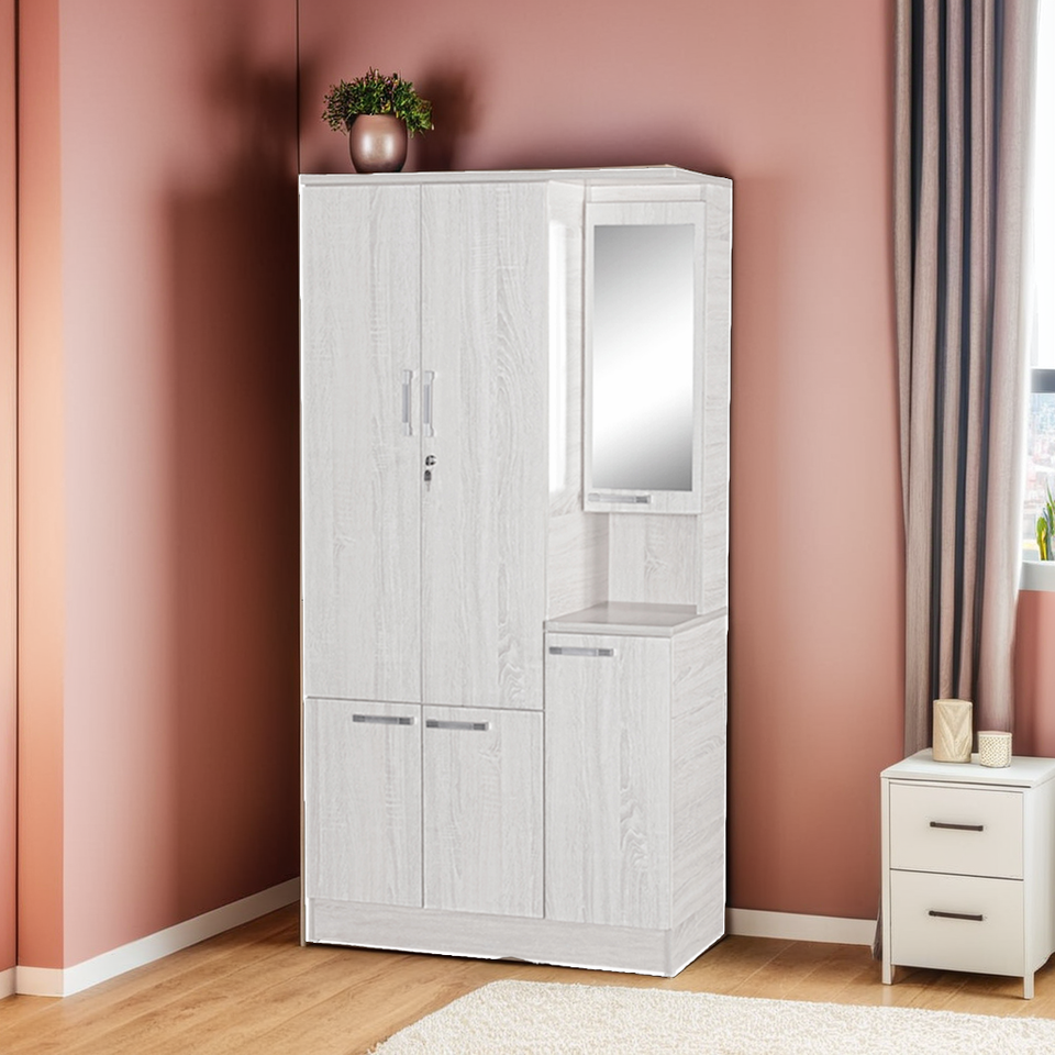 Modern Spacious Storage Plywood Wardrobe Cabinet White/Dark Oak Makeup Side Mirror for Apartment Home Villa Bedroom Wholesale