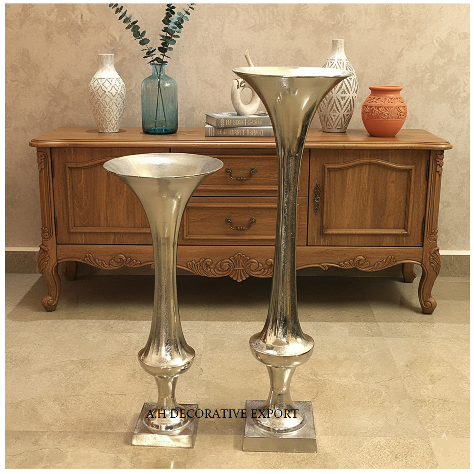 Modern Square Base Tall Centerpiece Vases Wedding & Event Decor Aluminum Flower Stands Aisle Stand Trumpet Vase Flower Pots