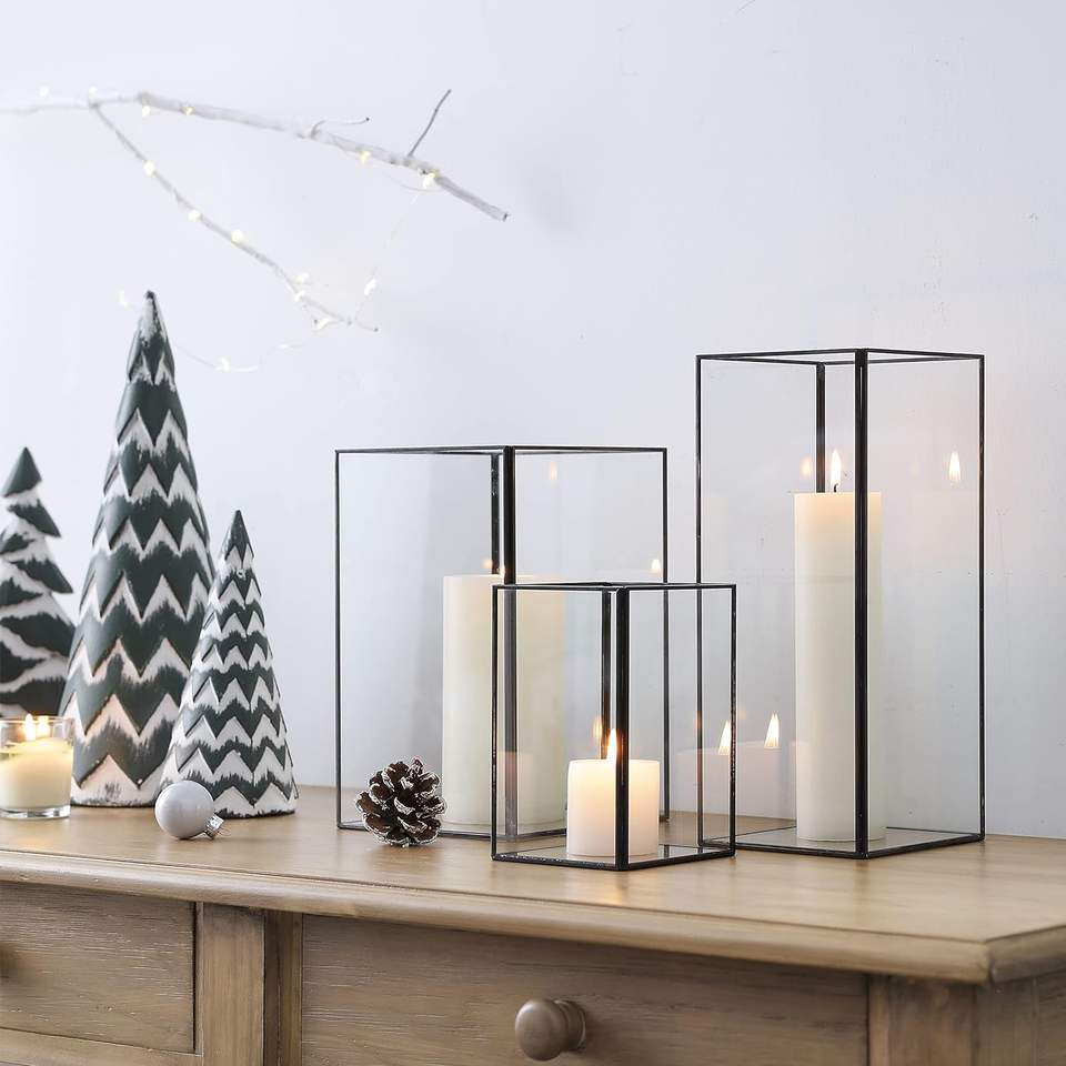 Modern Square Black Iron Frame Clear Glass Hurricanes Candle Holder Handmade Customized Sizes for Easter Home Decoration