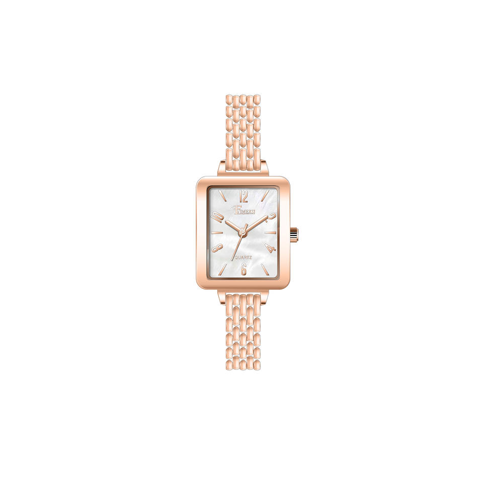 Modern Square Chic Metal Women's Sleek Edge Watch Seiko Quartz Analog with MOP Dial and Glass Business Fashion Alloy Case