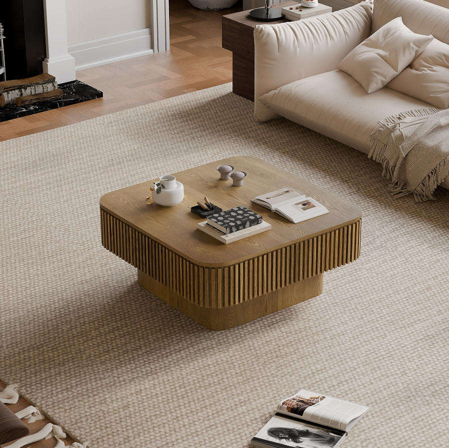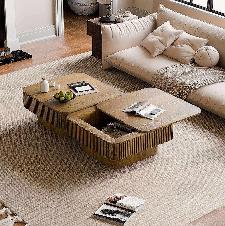 Modern Square Coffee Table with Storage Wood Material for Living Room and Hotel Use