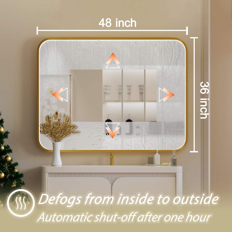 Modern Square Design LED Bathroom Black Frame Wall-Mounted Rounded Corners Touch Control Anti-Fog Function Illuminated for