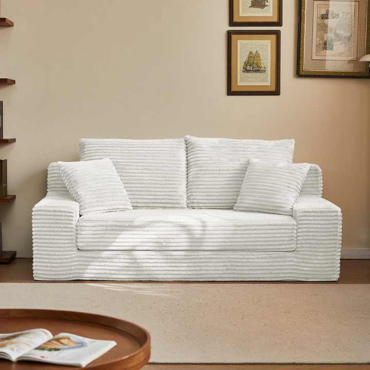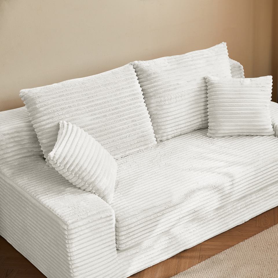 Modern Square Guest Bed Convertible Sofa with Pull-Out Sleeper Foldable Design Fabric Upholstery Pillows for Bedroom Living Room