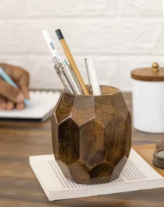 Modern Square Pen Holder for Desk Wood | Fancy Office Table Pencil Cup Stand Cute Pretty by Crescent Crafts