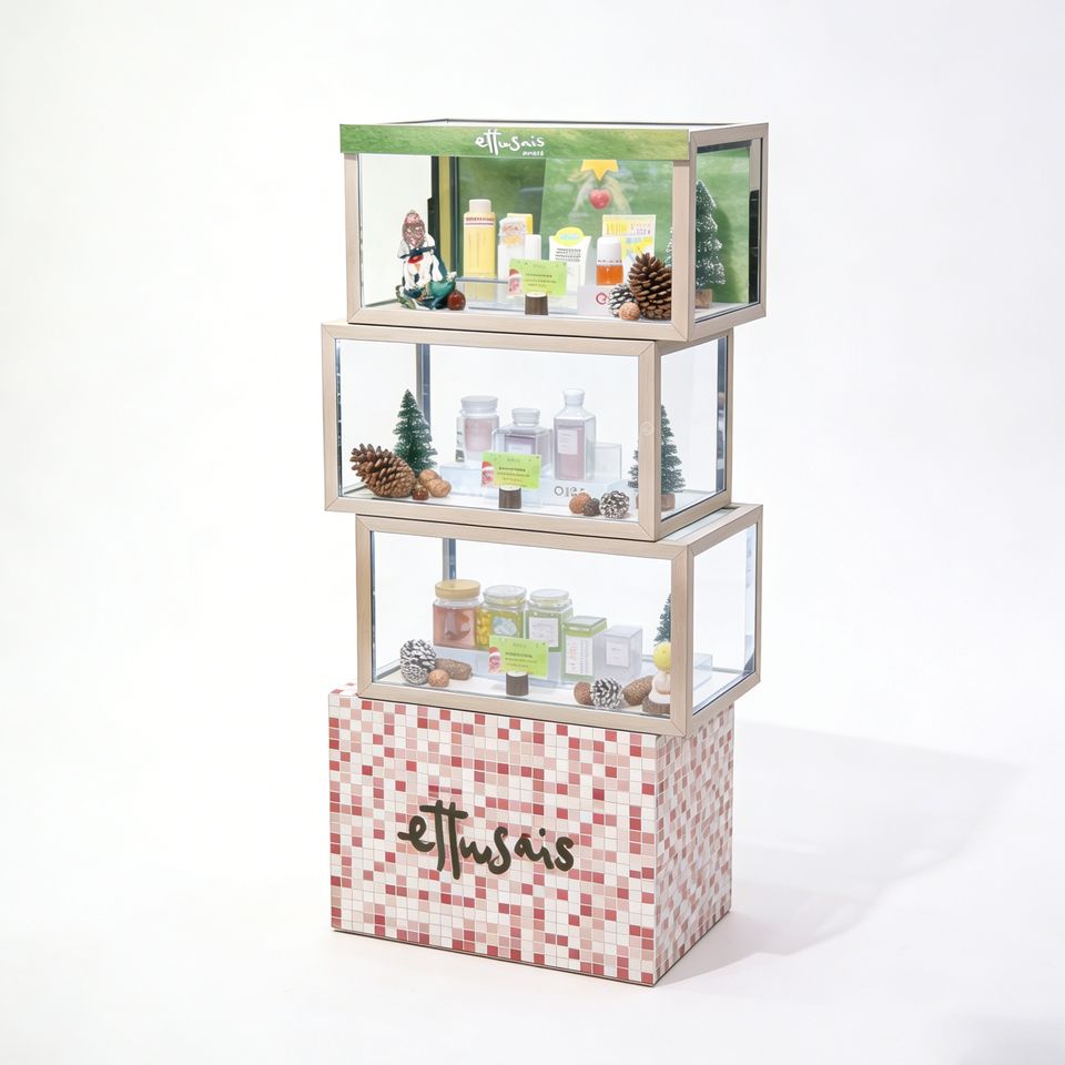 Modern Stackable Glass Display Cabinet with Metal Frame Stand for Perfume Jewelry Skincare Retail Store Showcases