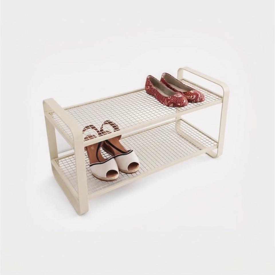 Modern Stackable Metal Mesh Shoe Rack Beige Iron Entryway Shoe Organizer Shelf Space Saving Home Footwear Storage Solution