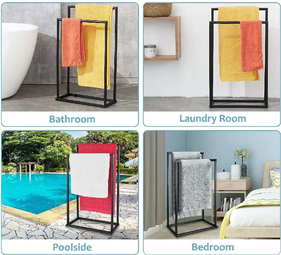 Modern Stainless Steel 2-Bar Towel Rack Display Stand Detachable for Outdoor Bedroom Hotel Bathroom Kitchen Storage