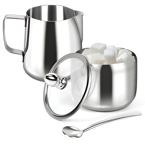 Modern Stainless Steel 304 Cream Jug and Sugar Bowl with Lid and Spoon Tray Server Sugar and Creamer Set Sugar Bowl