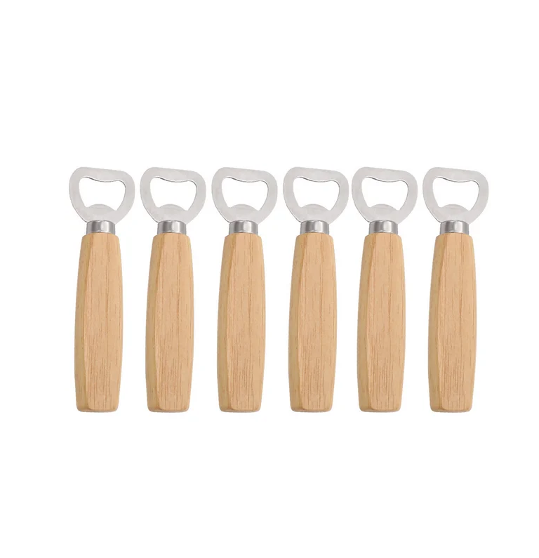 Modern Stainless Steel Bottle Opener Wood Handle Custom Logo Key Chain Keys Bar Tool Beer Wine Openers