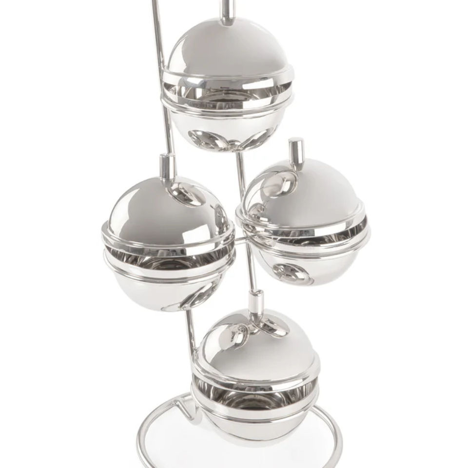 Modern Stainless Steel Condiment Holder With Four Lidded Bowl On Stand Luxury Spice Server For Kitchen Dining And Restaurant Use