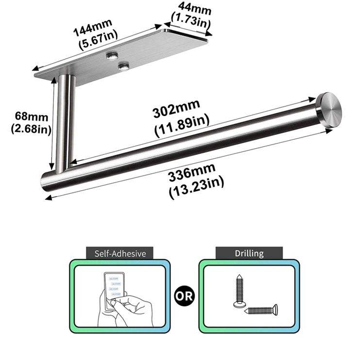 Modern Stainless Steel Self-Adhesive Paper Towel Rack Cabinet Holder Kitchen Stylish Brushed Finish Eco-Friendly Waterproof
