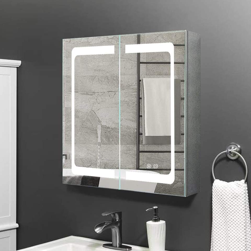Modern Stainless Steel Wall-Mounted LED Illuminated Rectangle Mirror Medicine Cabinet Hotel Application with Light Equipped