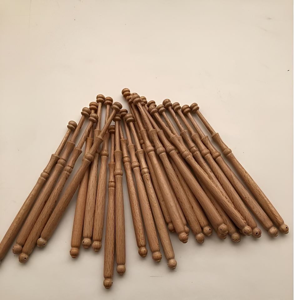 Modern Steam Beech Wood Tapestry Bobbins Natural Single Head Solid Wool Short Rod Wood Stick Weaving Tool Bobbins