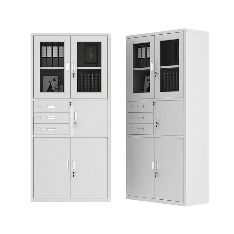 Modern Steel Filing Cabinet with Glass Doors Large Capacity Storage for Workshop Use