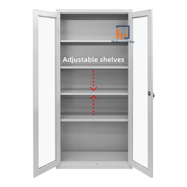 Modern Steel Office Filing Cabinet with 2 Glass Doors-Durable Storage for Workshop and Home Office