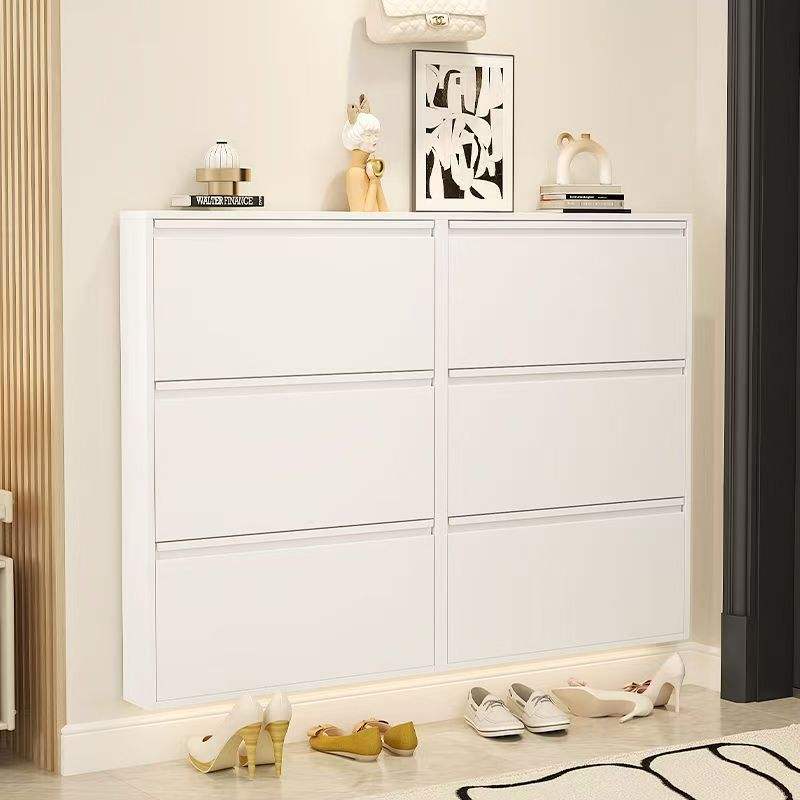 Modern Steel Ultra-Thin Steel Shoe Rack Factory Wholesale Steel Shoe Cabinet with Magnetic Goose Handle Wall Mounted Shoe Shelf