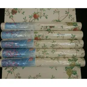 Modern Striped Floral Design Prepasted Fruit Kitchen Wallpaper Fireproof for Bedroom Living Room-Double Rolls Lot of 5 (#26333)