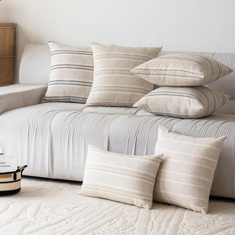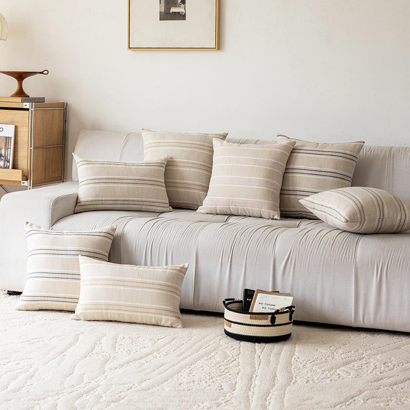 Modern Striped Pillow Cases Square 45x45cm Breathable Cotton Polyester Mix Living Room Sofa Cushion Covers Multicolored