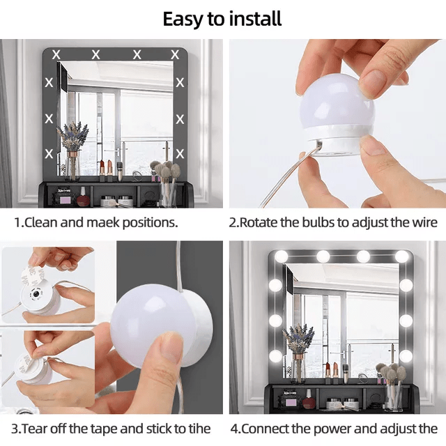 Modern Style 50mm 12-Bulb LED Makeup Vanity Light Bulbs Customizable Cosmetic Mirror Dimmer for Bathroom and Bedroom
