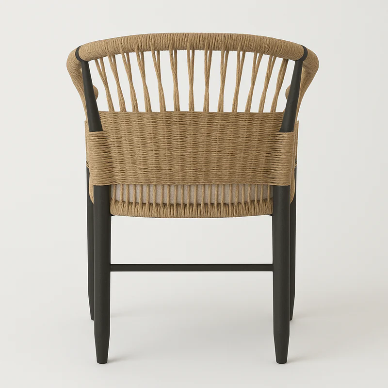 Modern Style Black Aluminum Dining Chairs Comfortable Patio Yard Outdoor Garden Balcony Rope Armchairs for Apartment Japan