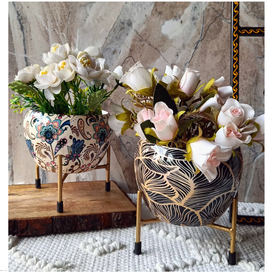 Modern Style Black Metal Planter With Gold Metal Stand Decorative Flower Pots Garden Supplies for Hanging Floor Use Wholesale